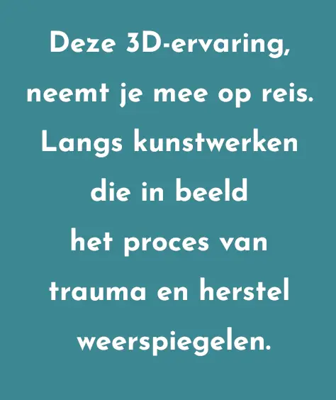 In deze 3D-omgeving ben je getuige van kunstwerken die de zoektocht en groei van trauma en herstel vertellen. Het gaat over helen, eigenaarschap nemen en ontwikkelen. Daarbij is het belangrijk om het thema trauma met lichtheid en humor te benaderen, zonder de ernst van.